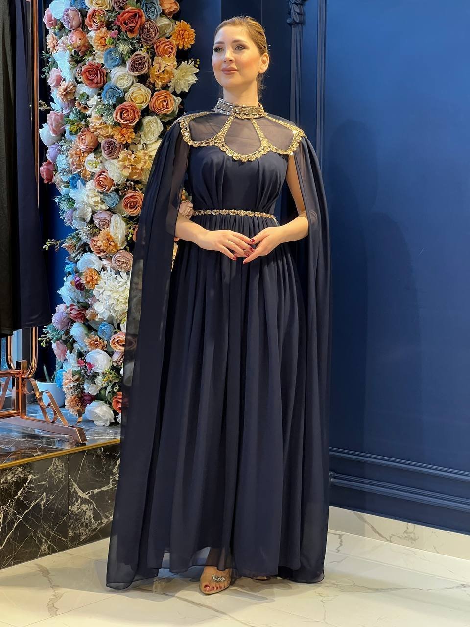طويل مع اكمام مفتوحة من الكتف