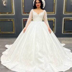 فستان زفاف أبيض راقي تأجير بدلات عرس في بوتيك ملاك – مرسين